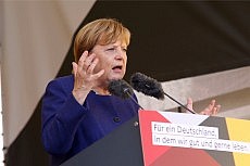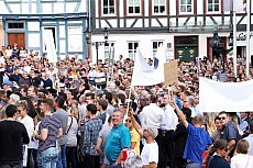15.08.17 - Die mächtigste Frau der Welt in Gelnhausen - Bundeskanzlerin Angela Merkel war am Montagabend zu Gast auf dem Obermarkt der Barbarossastadt. 3.000 Zuschauern erklärte sie bei Sonnenschein, warum es das Beste wäre, am 24. September die Stimme der CDU und den beiden Wahlkreisabgeordneten Peter Tauber und Katja Leikert zu geben. Am Rande der Wahlkampfveranstaltung demonstrierten 150 AfD-Anhänger - darunter die hessische Spitzenkandidatin Mariana Harder-Kühnel und der Fuldaer Bundestagskandidat Martin Hohmann - mit „Hau ab!“-Rufen gegen Merkel. Polizeisprecher Michael Malkmus sprach dennoch von einem reibungslosen Einsatz ohne Störung.