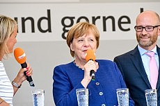 Den Dieselskandal, Bildungspolitik und Probleme auf dem Land sprach die Kanzlerin an - ebenso die gut 100 Windkraftgegner, die am Rande der Veranstaltung demonstrierten. „Dass wir unsere Energieversorgung auf eine gute und zukunftsfähige Basis stellen wollen, da sind wir uns einig. Dazu braucht es die erneuerbare Energie“, so Merkel zu den Demonstrierenden, „ich kann jeden verstehen, der kein Windrad vor der Haustüre haben möchte. Deshalb muss jeder Fall einzeln diskutiert und bewertet werden. Die CDU steht aber schon immer für Maß und Mitte.“